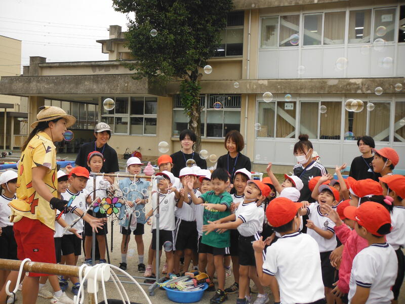 体験学習・夏の猛暑にミスト,冬はイルミネーションや餅つきなど,どうしたら皆が喜んでくれるかいつも