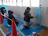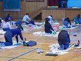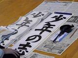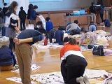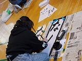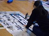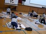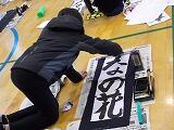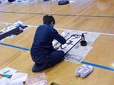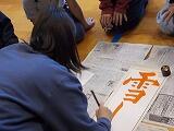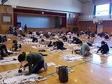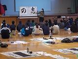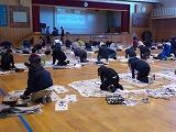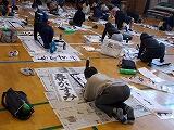 12月2日から今日まで4日間にわたって,3年生以上が学年ごとに書き初め練習を行いました。例年お越しいただいている綾部先生を講師に迎え,2クラスずつが体育館で実施しました。