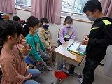昨日とは打って変わって,暖かく,晴天に恵まれました。3年生が沼南消防署高柳分署から4名の方をお迎えして消防署の仕事について,教えていただきました。