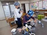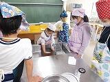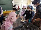 上学年のお兄さんが,年下の「仲間」に教えてあげたり,見守ってあげたり,とても素敵な時間でした。何度も見に行ったので,私の分も作ってくれて,給食の時間においしくいただきました。調理実習を実践できる喜びをかみしめています。