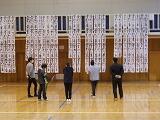 本日と21日(金)が校内書き初め展です。体育館に全学年の力作が並びました。