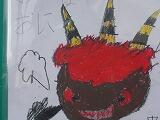 なかよし学級の廊下には,手作り鬼が掲示されました。紙皿を着色し,材料をうまく使って,かわいらしい鬼を楽しく作っていました。