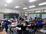 今学期も3つの学年が読書会を実施しました。読書会とは,全員が同じ本を読んで,同じテーマで話し合ったり,感想を伝え合ったりする図書の時間です。担任と学校図書館指導員の山田先生が授業をしてくださいました。