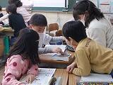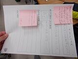 先生は,個別に指導する際,まずは「ほめる」そうです。「いいねえ,自分ではどう思う?」と聞くと,自分なりにうまくできた点,もう少しがんばりたい点などが出てくるので,それを「やってみよう。」と促すとのこと。もちろん細かい技術的な指導も必要ですが,まずは,「よし,次もがんばって書くぞ。」という意欲を高める言葉がけが,とても大切であることを学びました。他教科や活動場面でも応用できそうです。私たちも勉強になります。
