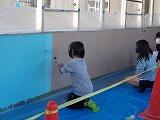 少しずつ,「卒業に向けて」の活動が増えてきています。「にじかけ」「ゆめかけ」の通路の壁面が,6年生によって,きれいなスカイブルーに変身。これからどんなデザインが描かれるのか楽しみです。