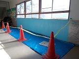 始めに体育館に集まって,どんな仕事があるのか,注意していること等を説明していただきました。その後,外に出て,ポンプ車を見ながら設備等を学びました。これでも中型と聞いて,その大きさに驚いていました。