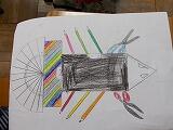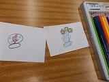 職員室には,電話がたくさんあったり,防犯カメラの映像を映す大きな画面があったり,大発見がたくさんあったようです。教室に戻った1年生は,見たものを絵に描いていました。校長室には,花があったことを覚えてくれていたようです!