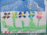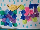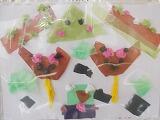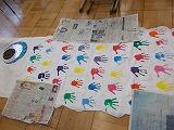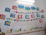 1年生の「活動」に戻ります。廊下には,お花紙を使った作品が掲示されています。柔らかい色紙を丁寧に扱いながら,思い思いの作品ができています。発想豊かに楽しんでいたことが感じられる作品ばかりです。