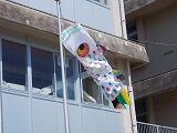 なかよし・すくすく学級では,手形をうろこに見立てて,大きなこいのぼりを制作しています。今日,1匹が大空に泳ぎ出しました。青い空にとても気持ちよさそうです。