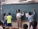 2年生の算数では,「かさ」の学習です。実際に色水と容器を使って,リットルやデシリットルを学びます。ほんとうに「知りたい」場面になると,子どもはじっと座ってなんかいられません。椅子に膝をついて,身を乗り出します。そんな食い入るように見つめる「やなぎっ子」の姿を見ると,「学んでいるなあ」とうれしくなります。
