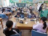 6年生は,国語で随筆の学習をしています。教科書に載っている随筆を読んだ後,図書室にあるたくさんの随筆を読んでいます。そして自分なりの随筆を書くことが学習のゴールです。学校図書館指導員の山田先生が,授業の中でお勧めの随筆集を紹介してくれました。全部を読む時間はとれないので,少しずつ読んで味わっていました。これを「味見読書」といいます。この後,読んでみたいな,という本を手に取って読み進めてくれるとうれしいですね。