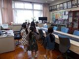 校長室にもたくさんのペアが訪れました。2回めですが,歴代の校長先生方の写真や,クラス写真に興味津々でした。放送室は,だいぶ奥まった場所ですが,毎日使われている大事な場所です。初めてじっくり見たかもしれませんね。