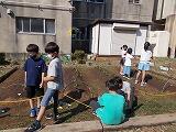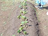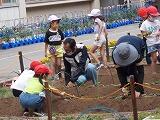 いろいろな野菜を紹介してくださったあと,一人ひとつずつ苗を植え付けました。これからどんな育ち方をするのか,楽しみです。