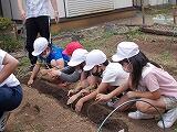 1年生のアサガオは,大きな本葉をたくさんつけて育っています。先日苗植えをしたサツマイモは根付いているようです。2年生が朝から水やりをがんばっています。育つ命を大切にする心が育っていることがうれしいです。