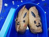 顔になっているおにぎりや,大好きなフルーツなど,とてもうれしそうに食べる2年生,みんな「笑顔」でした。ご協力いただき,ありがとうございました。