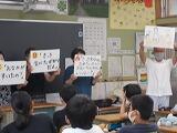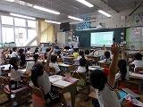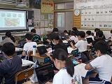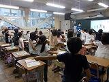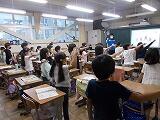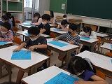 3年生が図工の作品をお互いに見合う,「鑑賞」の授業が行われていました。気持ちを込めて作った作品に自分なりの説明も書いて紹介しています。それをお互いに見合って,「すてきだな」と思うことをワークシートに記入していました。「人を大切にする」「考えを表現する」どちらにも迫る授業です。