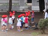 午後は「引き渡し訓練」でした。ずっと天気予報を見ながら,迷いつつ,外での引き渡しと判断しました。ところが,直前での降雨。空をうらめしく眺めながら急きょ,雨天バージョンに変更しました。保護者の皆さまには,突然の変更の上,待ち時間も長くなり,大変ご迷惑をおかけいたしました。申し訳ありませんでした。皆様のご協力のおかげで,引き渡しを滑らかに行うことができ,無事に実施することができました。ほんとうにありがとうございました。