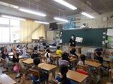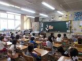 1時間めは,1年生の「学校たんけん」でした。今日は第1弾で,学級ごとに担任が説明しながら校内を巡りました。校長室にも「失礼します。」とにっこり挨拶して,入ってきた1年生,学校生活に慣れてきましたね。「何があるかな?」と問いかけると,様々な発見があったようです。来週には,2年生が,もっと詳しく知りたい場所を案内してくれる予定です。少しずつですが,できる範囲で交流しています。