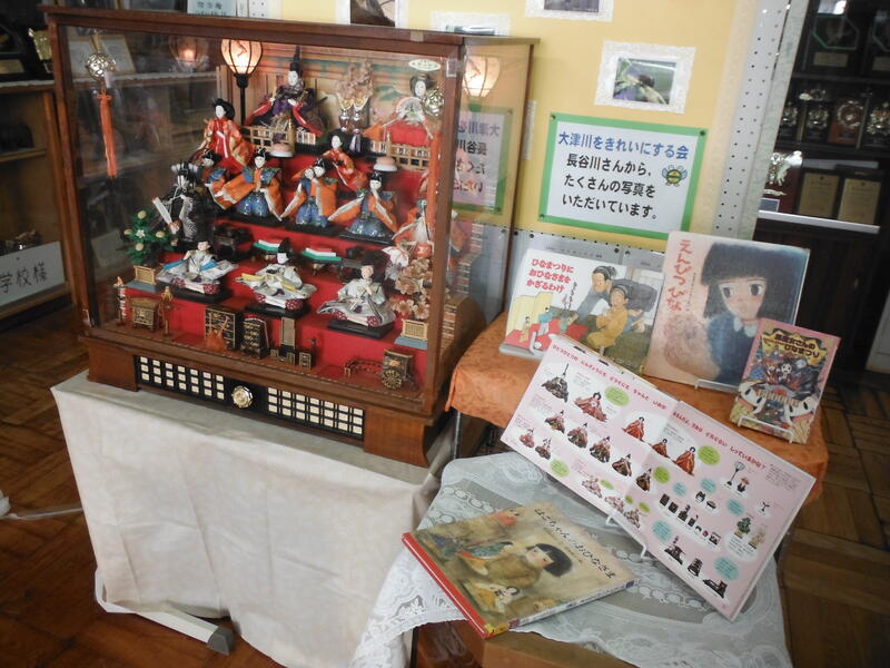 図書館指導員の大伯先生は,お雛様の絵本を集めて展示してくれました。さすがです!!