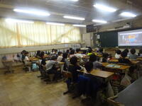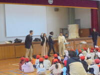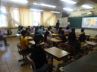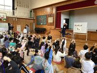 講師の方が、ソプラノリコーダーを使って『ピタゴラスイッチ』や人気の曲などを演奏してくれました。また、上手にリコーダーをふくためにはどうしたらよいかのアドバイスをもらい、きれいな音色を響かせました。さまざまな大きさのリコーダーが出てきたときには大きな歓声が上がりました。今後のリコーダーの授業に生かしていきたいと思います。