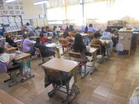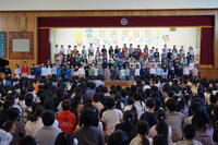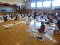 先週から今日にかけて校内書き初め大会が行われました。1~2年生は教室、3~6年生は体育館で行いました。一生懸命、集中して書いていました。児童が書いた作品は、1月22日~24日の間に体育館で飾られます。