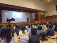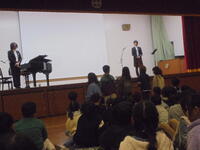 芸術鑑賞会ということで「スギテツ」(バイオリンとピアノのデュオ)が体育館でコンサートをしてくださいました。クラシックの曲に身近な知っている曲を混ぜて演奏していただき、児童たちも大喜びでした。音楽に親しむ貴重な機会となしました。