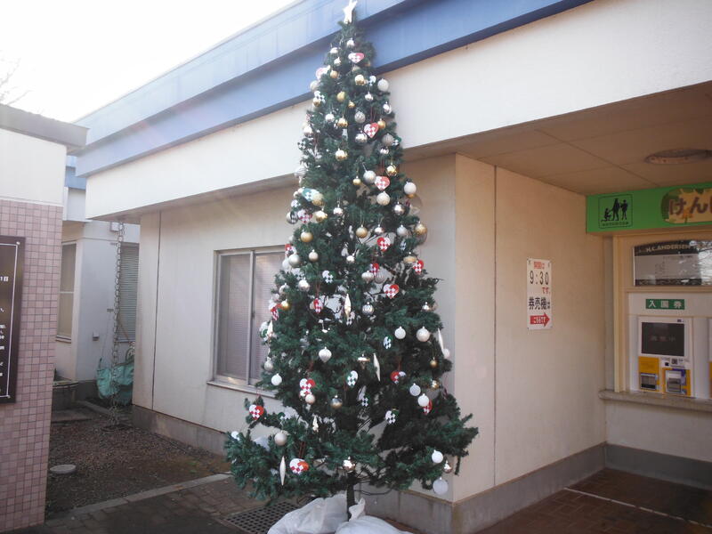 クリスマスの飾りつけが素敵でした。風車は工事中とのこと。虹が迎えてくれました。