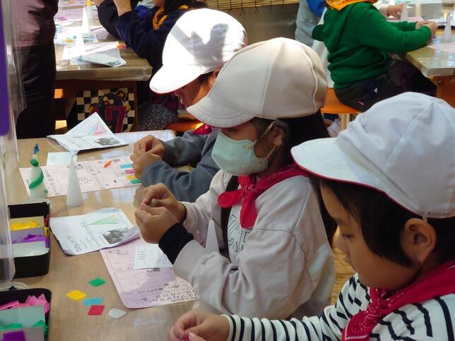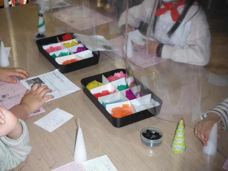 やなぎっ子は,楽しみながら作っていました。「できたよ」「見せて見せて」「すてきだね。」「いいね。」会話も弾みます。