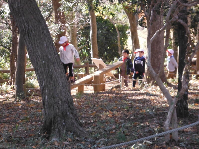 午後のアスレチックは,ペアでの活動。二人で相談し,楽しそうにチャレンジしていました。時間も気にしていてさすが!