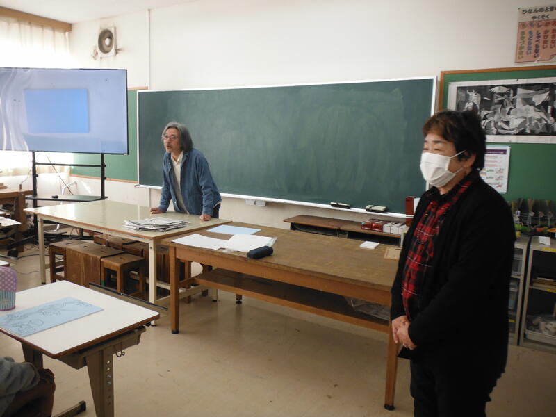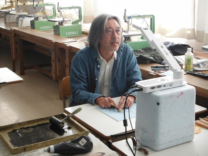 今年も版画の師匠「大野隆司」先生に来ていただき,クラスごとにご指導をお願いしました。