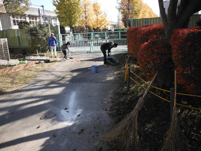 昨年度できなかった落ち葉はき。今年は,ご協力いただき,実施することができました。