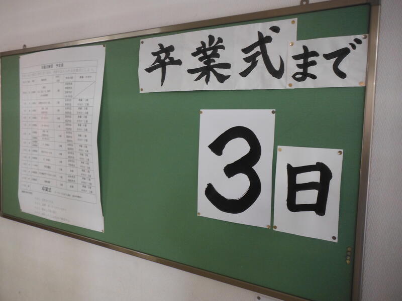 卒業式まであと3日 6年生の掲示板です。