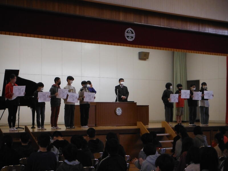 6年間の皆勤賞を渡しました。本当によく頑張りました。3年間はコロナ禍でしたので,例年よりも更に体調管理が大変だったと思います。ご家族に心から感謝。