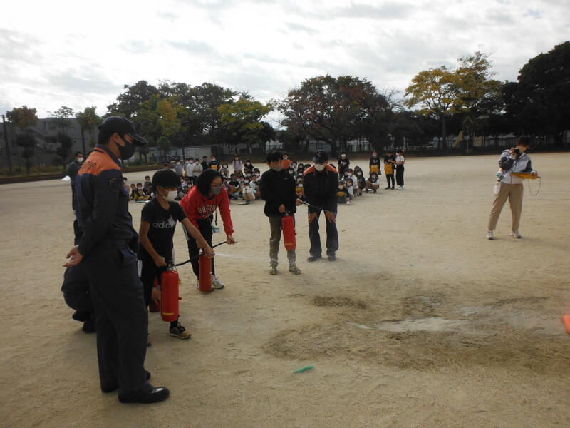 通報の仕方や消火器の使い方,消防署での仕事,消防車について教えていただきました。