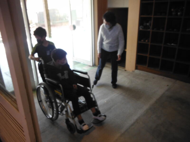 車いすに自分が乗った時,車いすを自分が押してあげる時の体験を全員がさせてもらいました。