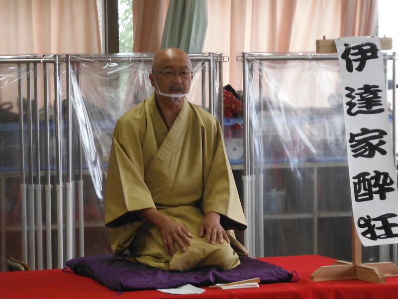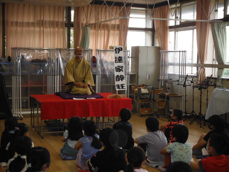 ①自慢したい人 4年生に落語を披露してくださった伊達家酔狂 さん。