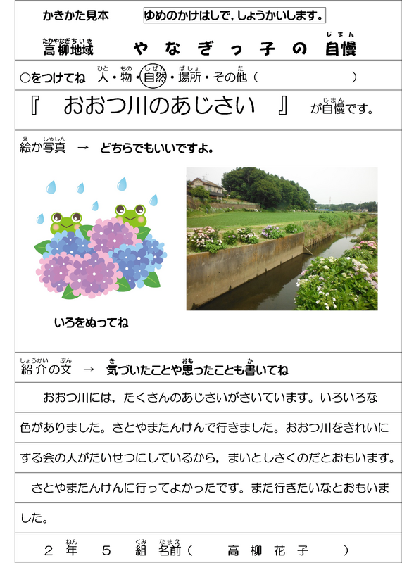 地域のよいところを教えてほしいと思いました。夏休みにとりくんでみてください。