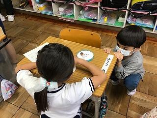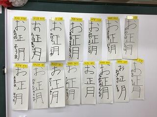 書き初めの練習もしました。初めて書いた皆の作品をまじまじ見ていました。