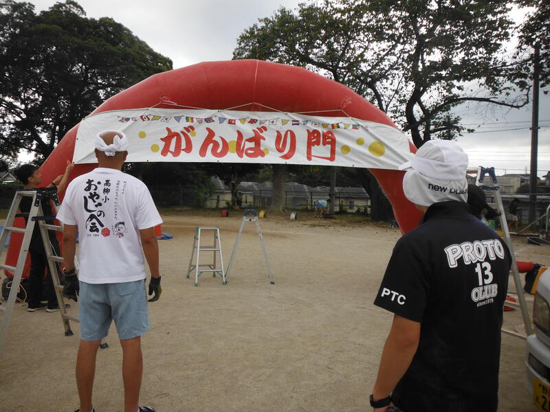 PTAのおかげで,すてきな入場門が設置できました。おやじの会の皆さんのアイデアと力でパパっと設置できて驚きました。