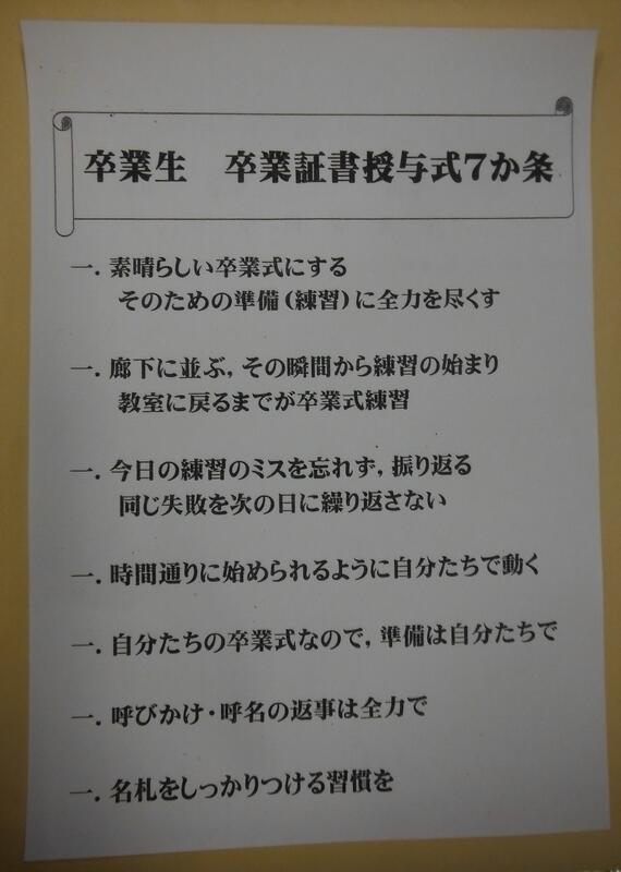 「卒業生 卒業証書授与式7か条」自分からこのような思いで,練習し当日を迎えたからだと思います。