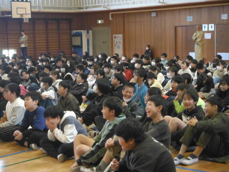 今年の芸術鑑賞会は,全校で落語を聴こうということになり,おやじの会の川鍋さんにご紹介いただき,