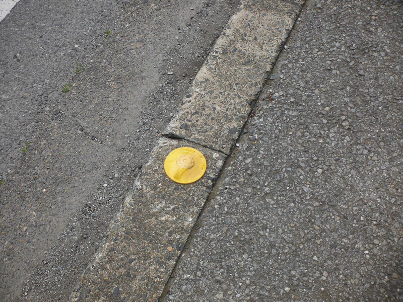 黄色の丸い形のものは昨年度に付けてもらったものです。歩道が夜でもわかります。