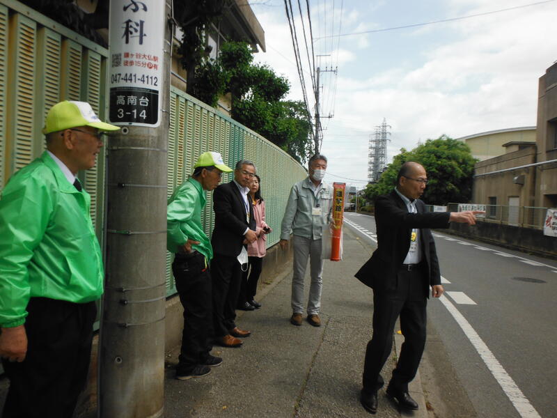 来校されました。通学路に安全のためのポールを立てて下さることになりました。