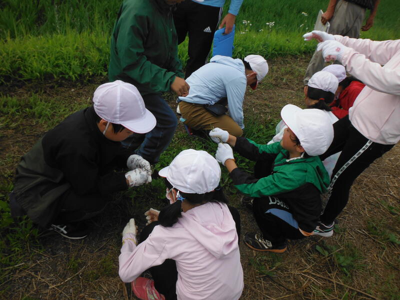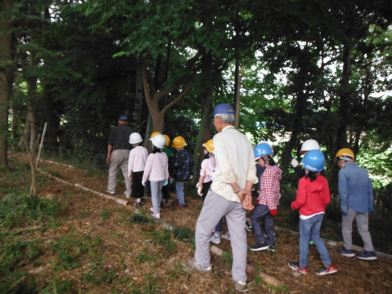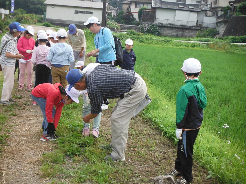 2年生の生活科で里山探検に行きました。大津川をきれいにする会の皆様,