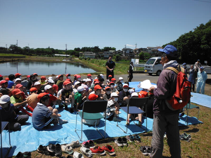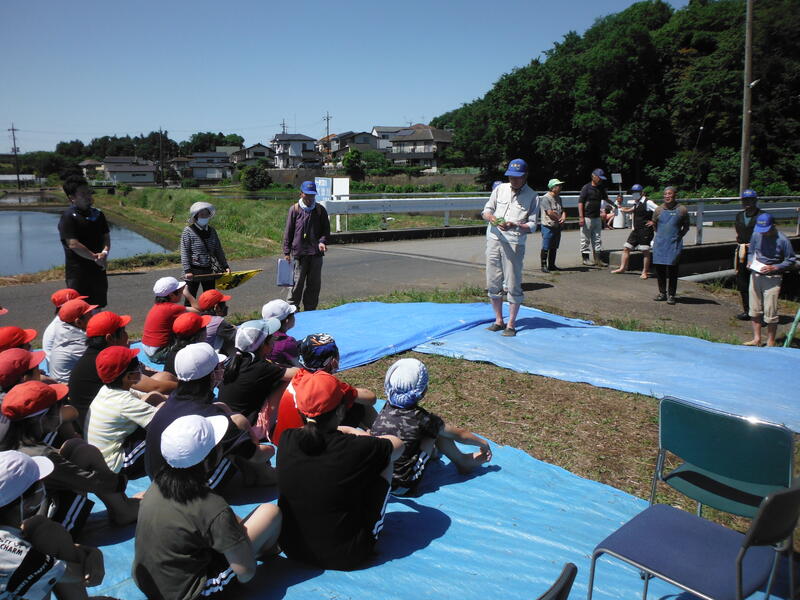 まず,素晴らしいのが事前の準備。けがをしないように,田んぼの中,その周りの安全確認をしてくれています。