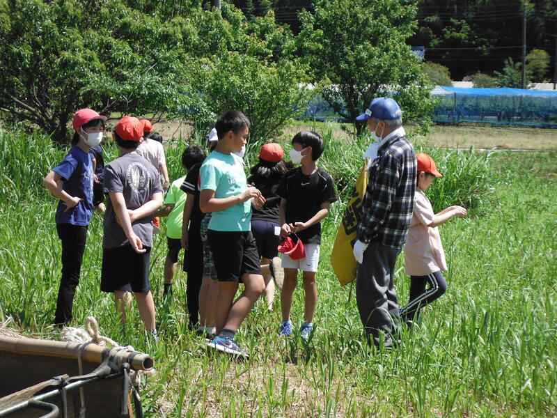 5月24日(水)晴天のもと,田植え体験(5年総合的な学習)