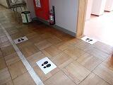 トイレに入るまでに足型が貼られています。