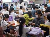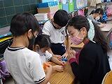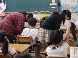 今日の朝学習の時間に,6年生が1年生の教室に数人ずつ入り,「折り鶴」を教えてくれました。ある方の体調回復を願って,全校で折り鶴を作るのですが,1年生にとっては難しい作業です。そこで,6年生の精鋭たちが,ミニ先生となって教えてくれました。