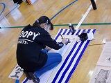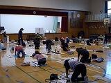 曇り空の冷たい空気の中,今日は4年生が体育館で書き初め練習に取り組みました。