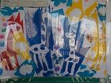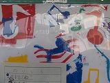 廊下掲示も今年最後の作品になるのでしょうか,力作が並んでいます。版画に取り組む2年生と5年生。学年の発達段階に応じて,素材を生かし,出来栄えがそれぞれに味わい深くなっています。